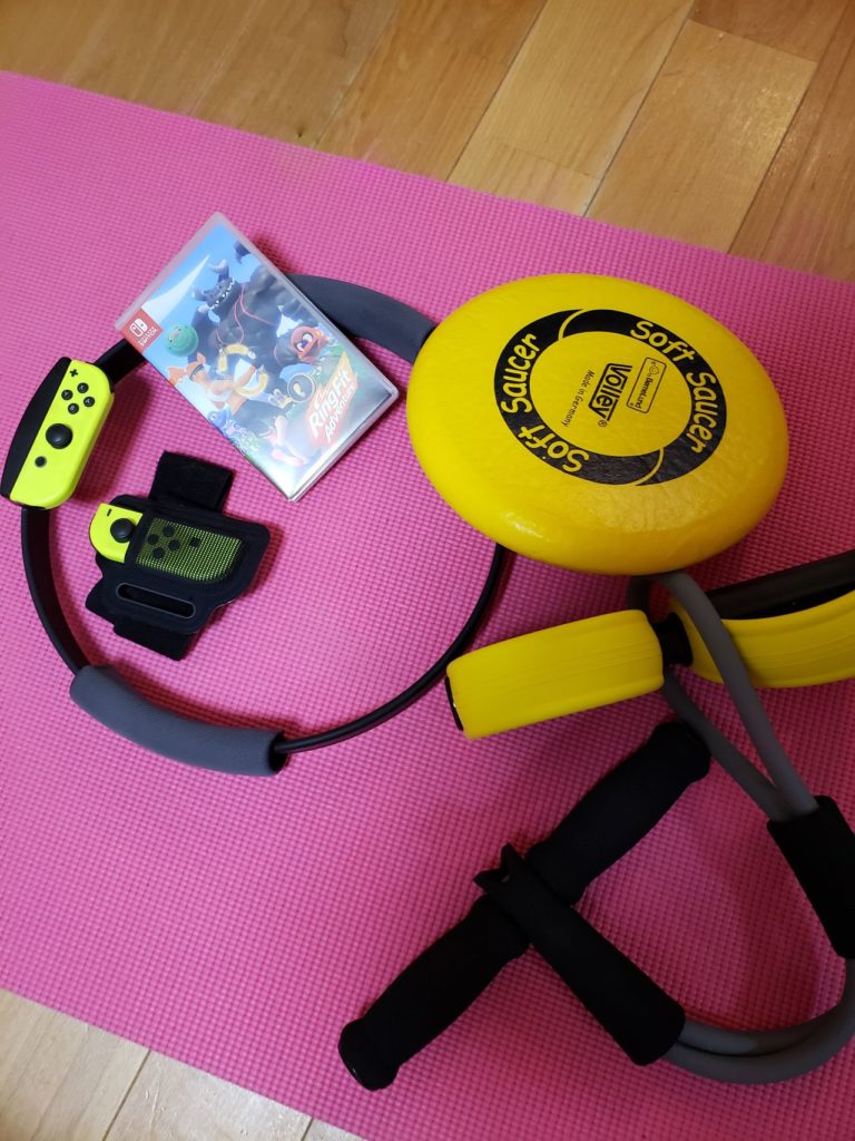 家の中では今人気のリングフィットネスやフリスビーで子供と遊んだり、
