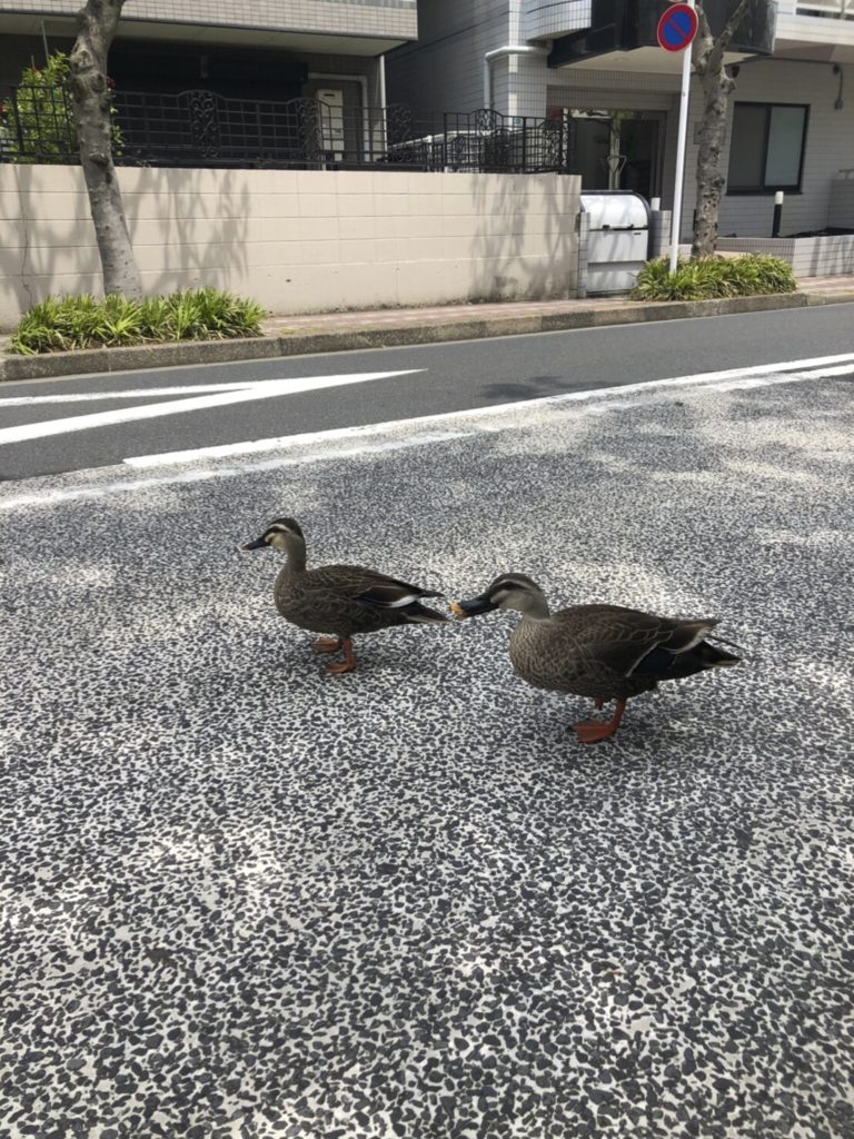 朝、散歩をしていたらカモが歩いていました♪朝の散歩はなぜこんなに気持ち良いのでしょう!