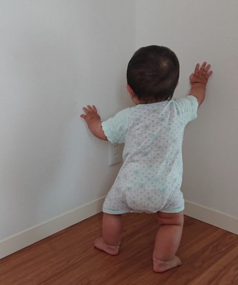 活発に動き周り、毎日在宅している横でつかまり立ちをして