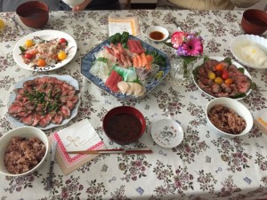お刺身の御造りを予約し、お部屋の飾りつけの準備をして。。