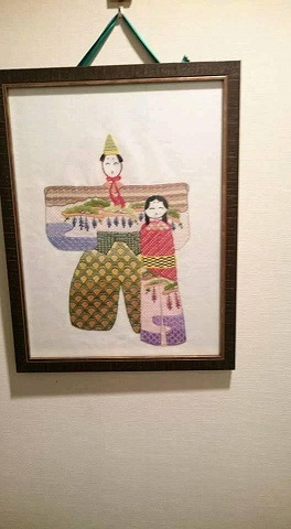 昨年の刺繍に続いて母が趣味のステンドグラスでお雛様を作ってくれました。