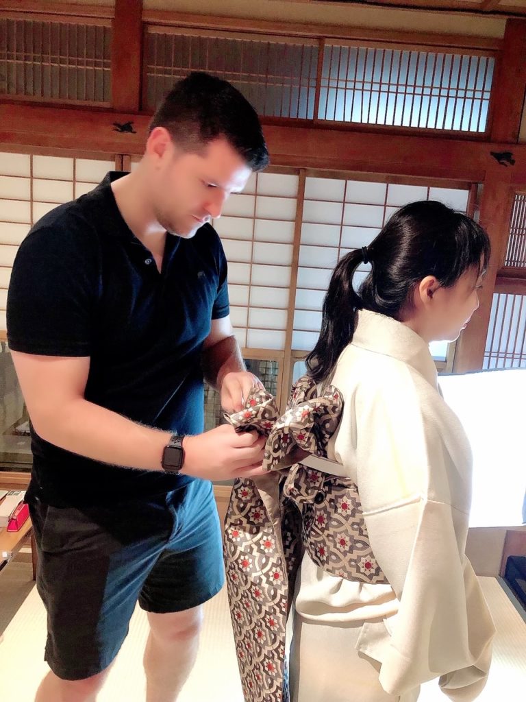 主人が着付けレッスンの時に、手伝ってくれている写真です☆彡
