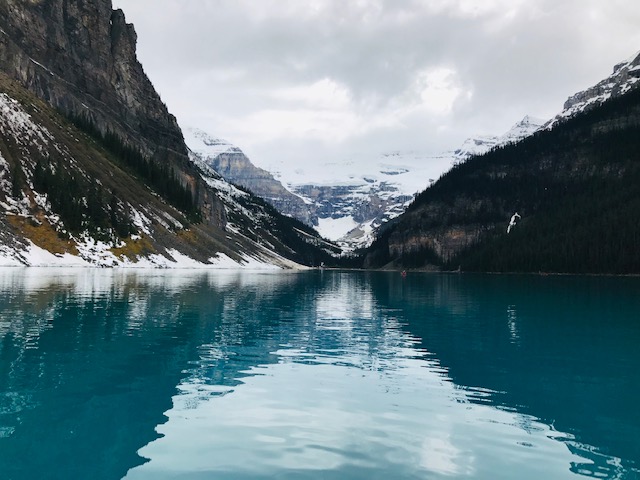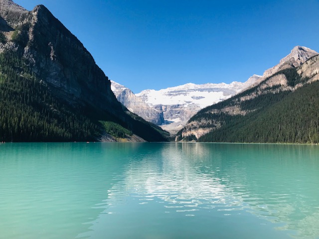 去年8月に初めてレイクルイーズを訪れたときは、こんな景色(こちら)が見られるのだろうと期待してたら灰色に濁ったなんとも言えない湖だったので、ひどく落ち込みました…。