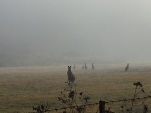 途中野生のカンガルーやワラビーに遭遇。