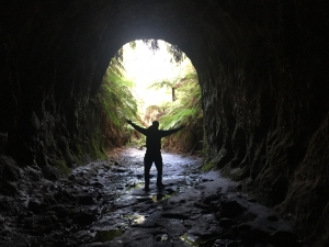 かつての鉄道トンネルから完全な暗闇(トンネル)に入った私達は、