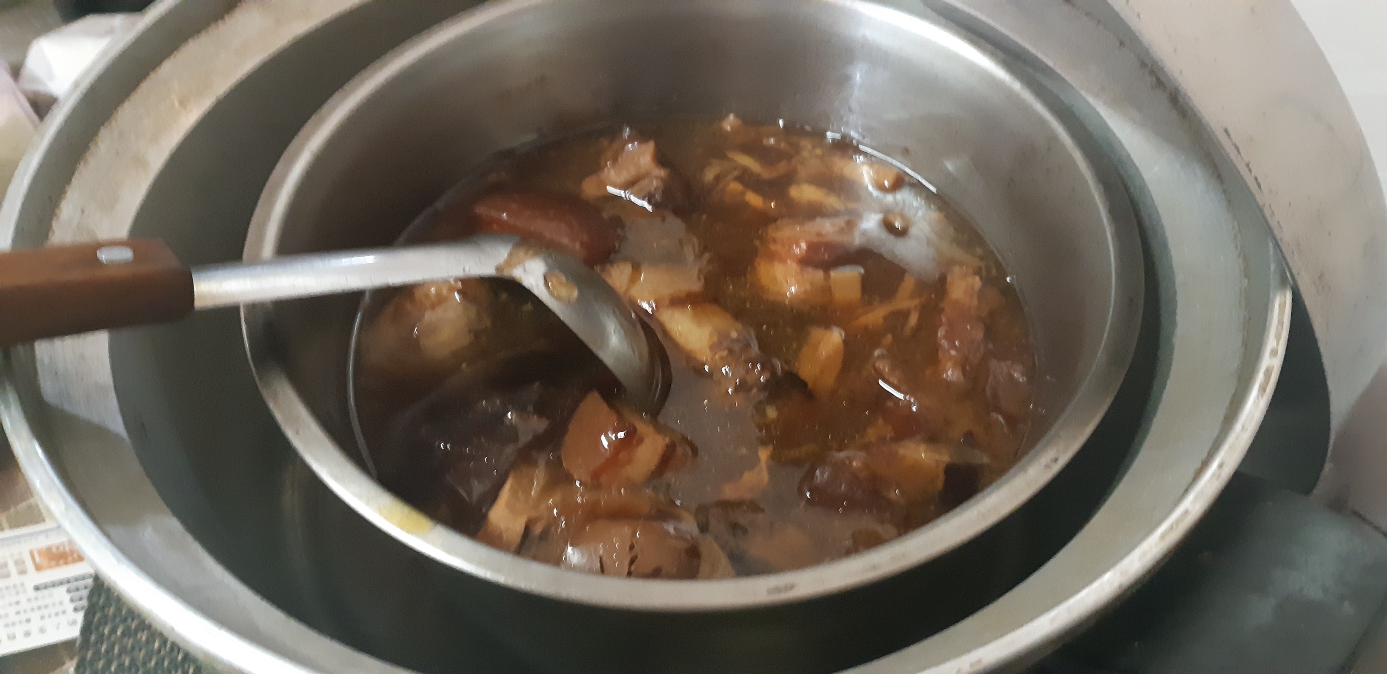 1時間ほどで電鍋のスイッチが上がり、周りにおいしいにおいがしてきます。