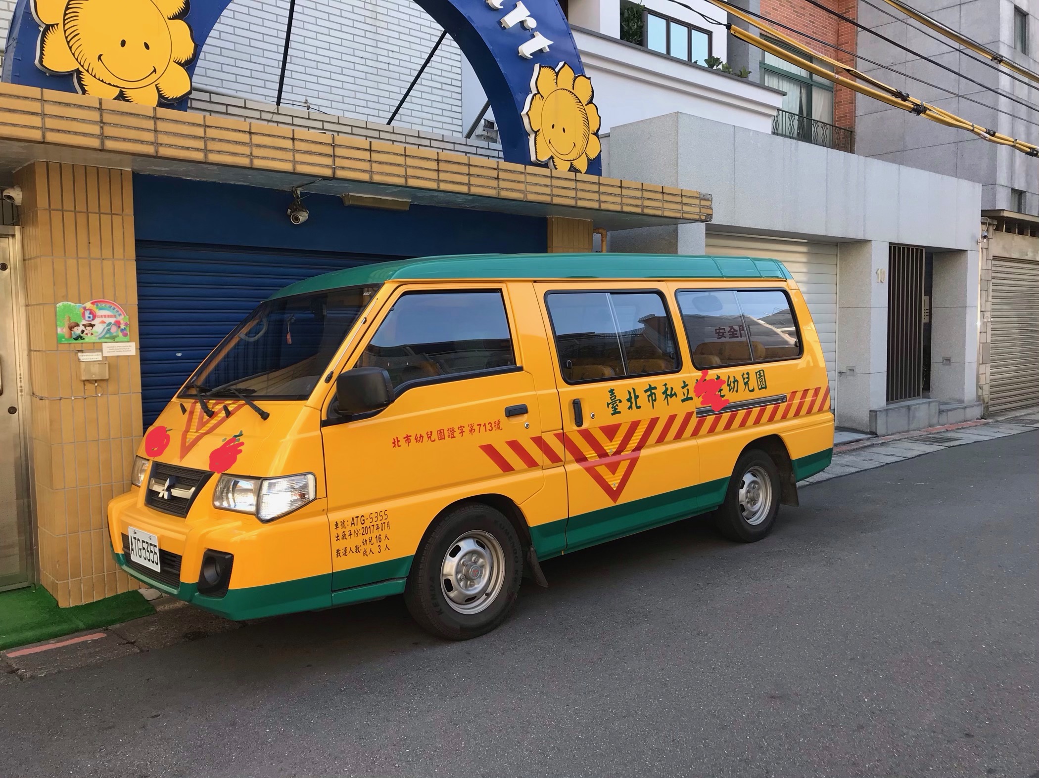 ビビットカラーのバンが台湾全土で基本統一されている幼稚園バスです。