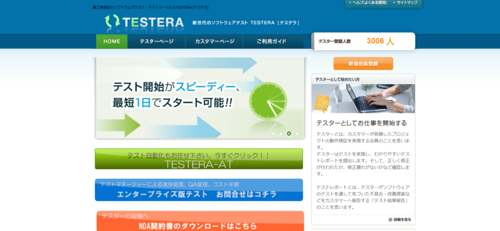株式会社楽堂のオンデマンドテストサービス「TESTERA」の特徴は、スケジュールに合わせていつでもすぐにテストができること、テスターとなる人材を選択できること、そしてテスターからのテストレポートのみに対して費用を支払う、成果報酬型のテスト実施が可能な点にあります。TESTERAに登録している3000人以上のテスター会員が様々なテストに即対応できる環境が整っており、申し込みから最短1日でテストが開始できるスピーディさも注目です。
