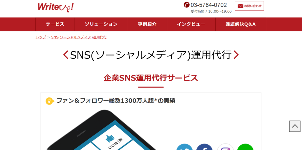 運用代行を請け負った企業のフォロワー数がのべ1300万人にのぼる、確かな実績を持った運用会社です。日常的な更新や新規アカウント立ち上げ支援、キャンペーン企画の提案など、SNSマーケティングを総合的に運用してくれます。プロのライターやカメラマンなどが運営に関わるため、クオリティの高いアカウント運用が可能です。