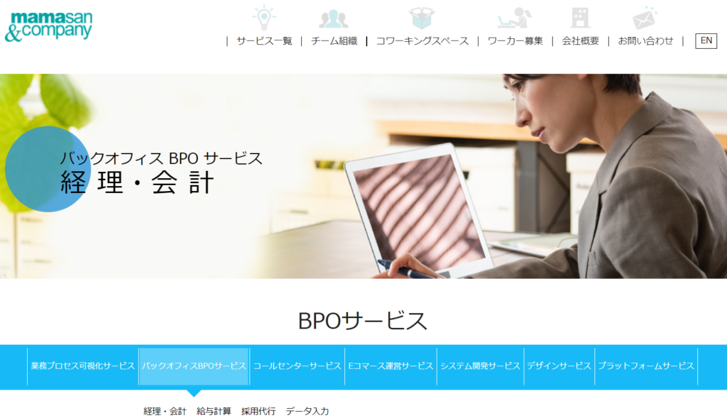 Mamasan&Company は「クオリティ・スピード・低コスト」 をコンセプトに、10年以上にわたり経理・給与計算・労務管理などのバックオフィス業務、システム開発、WEBやDTPなどのクリエイティブ業務をBPOで請け負っている企業です。Mamasan&Companyの経理・会計サービスは、セキュアな環境で経理業務を行い、大企業からも信頼を得ています。
