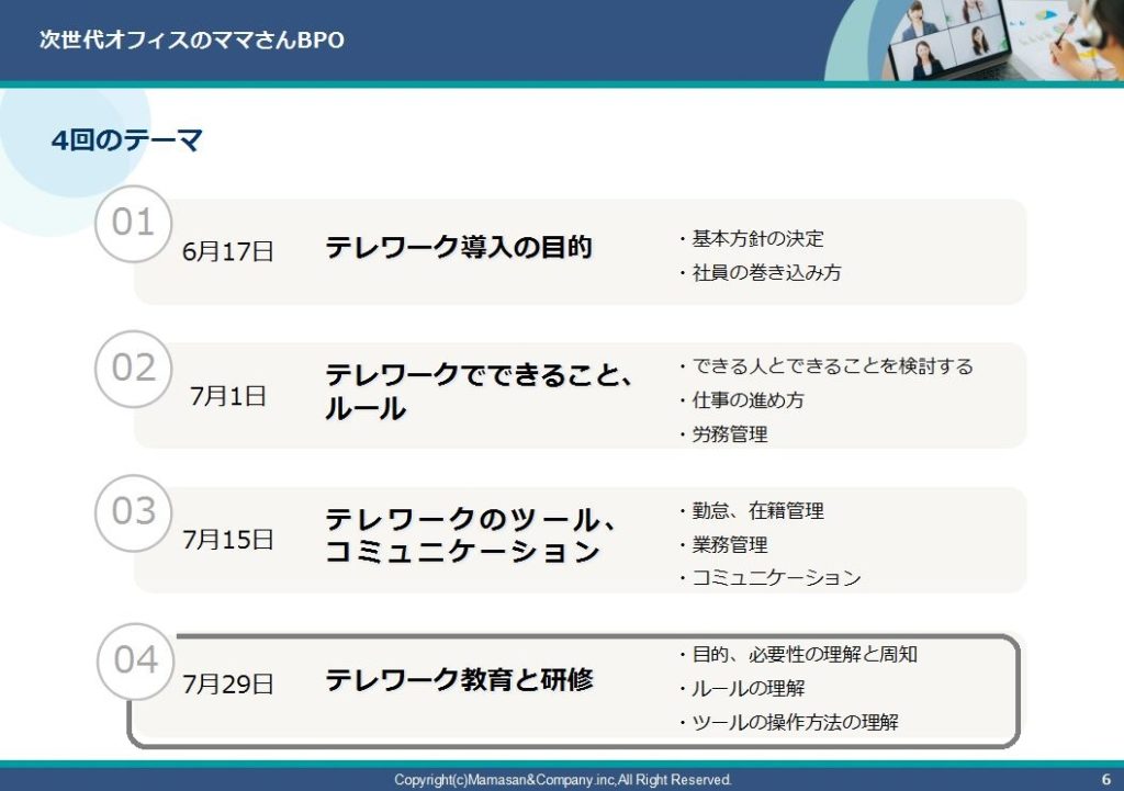 7月15日(水)、Mamasan&Companyテレワーク導入WEBセミナー第3回が行われました。