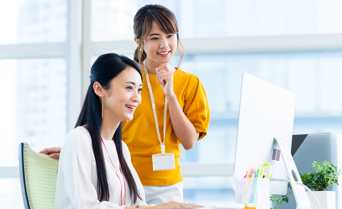 実際に仕事をしながら、ソフトやツールの使い方を丁寧に教えます。